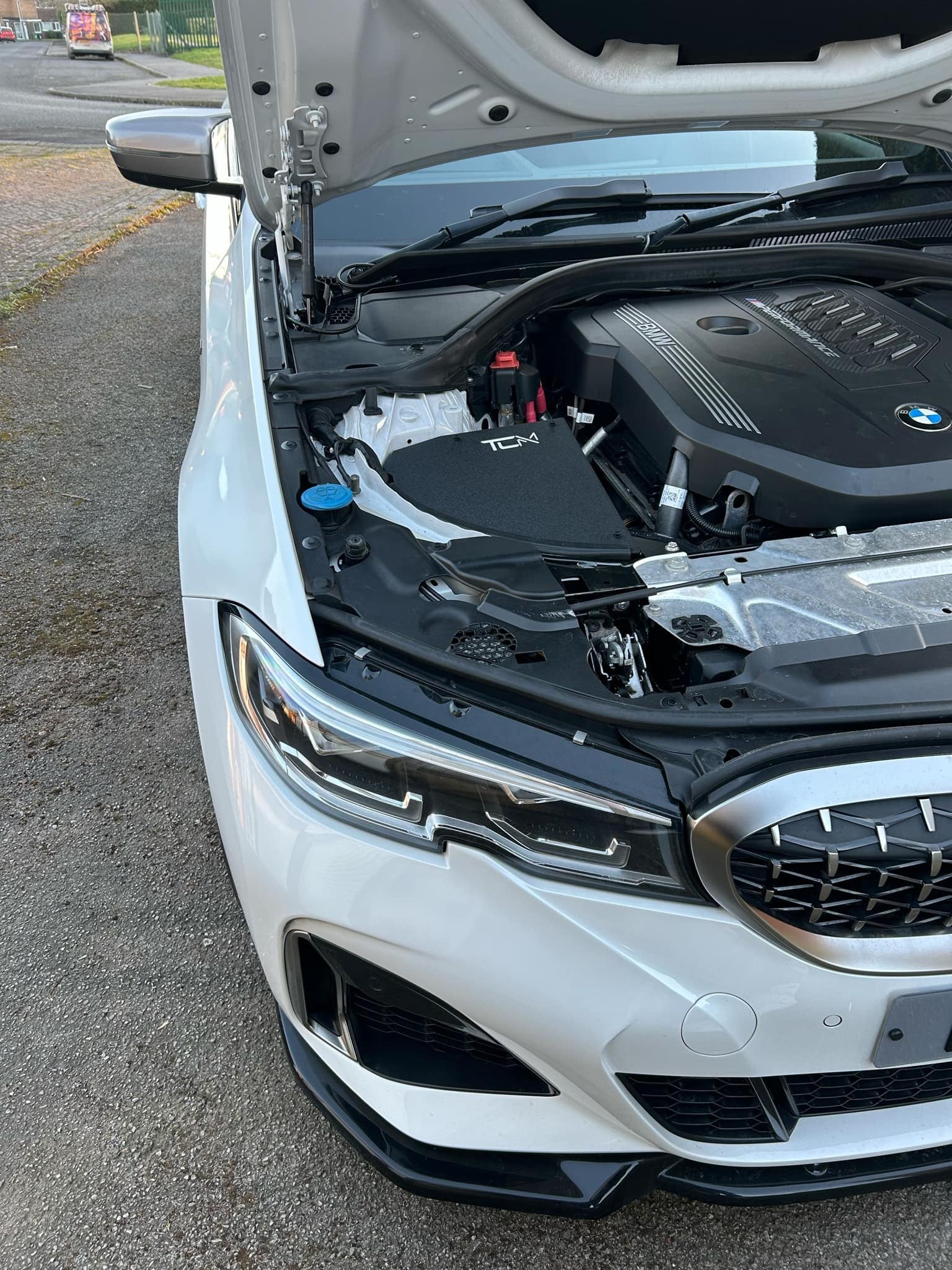 Introducing the TCM BMW M240 M340 M440 High Flow Air Intake W/ Heat Shield. Upgrade your engine bay with a high performance TCM intake. The plastic OEM intake is bulky and restrictive. TCM intake aims to remove those inefficiencies with a large cone filter to provide increased airflow along a widened intake tube for more airflow. We then surround the filter with an aluminum heat shield to block unwanted hot air from the engine and instead pull air from the front intake tract, which pulls air from outside the car.